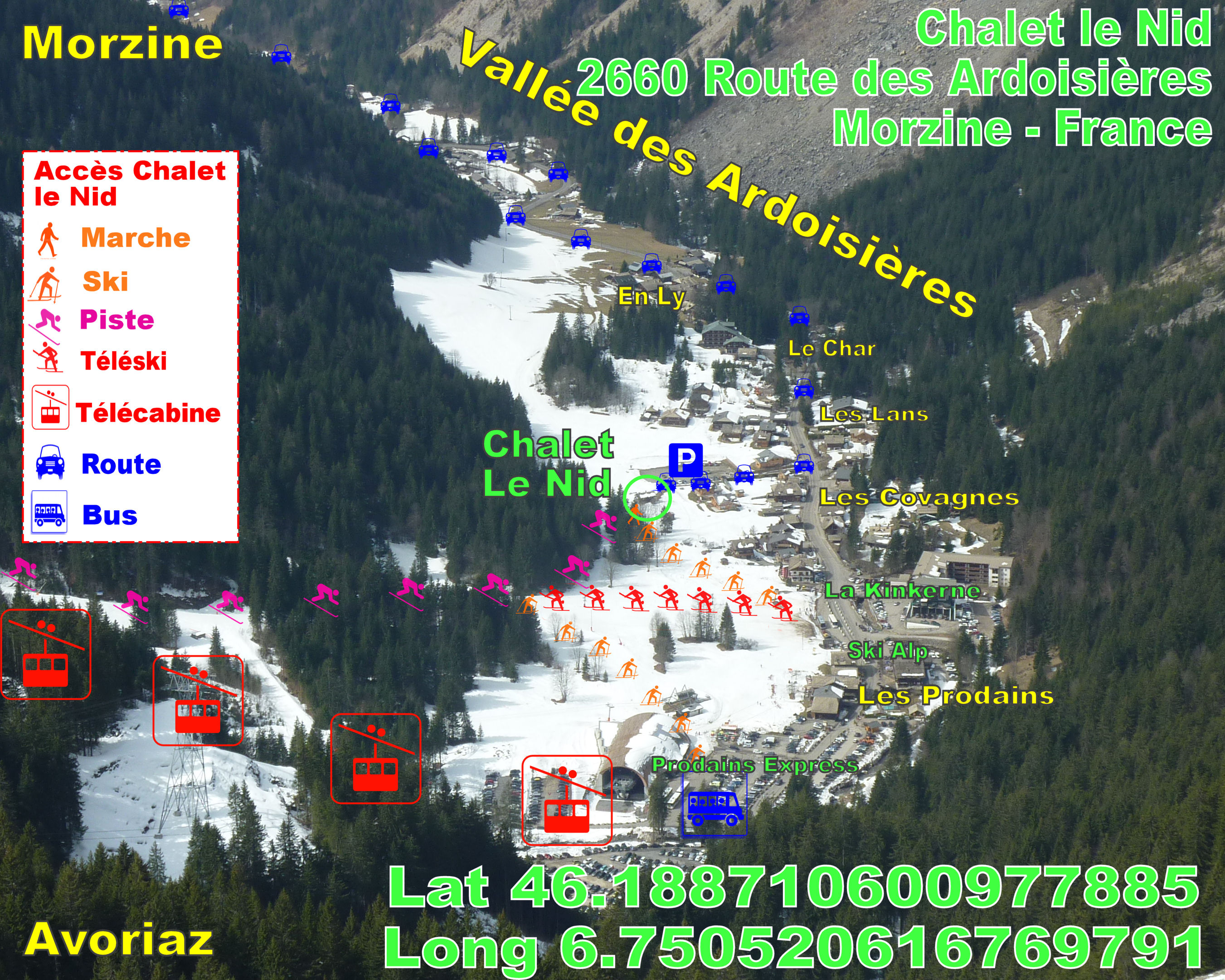 Pour vous rendre au chalet le Nid: Depuis le centre de Morzine, suivre la