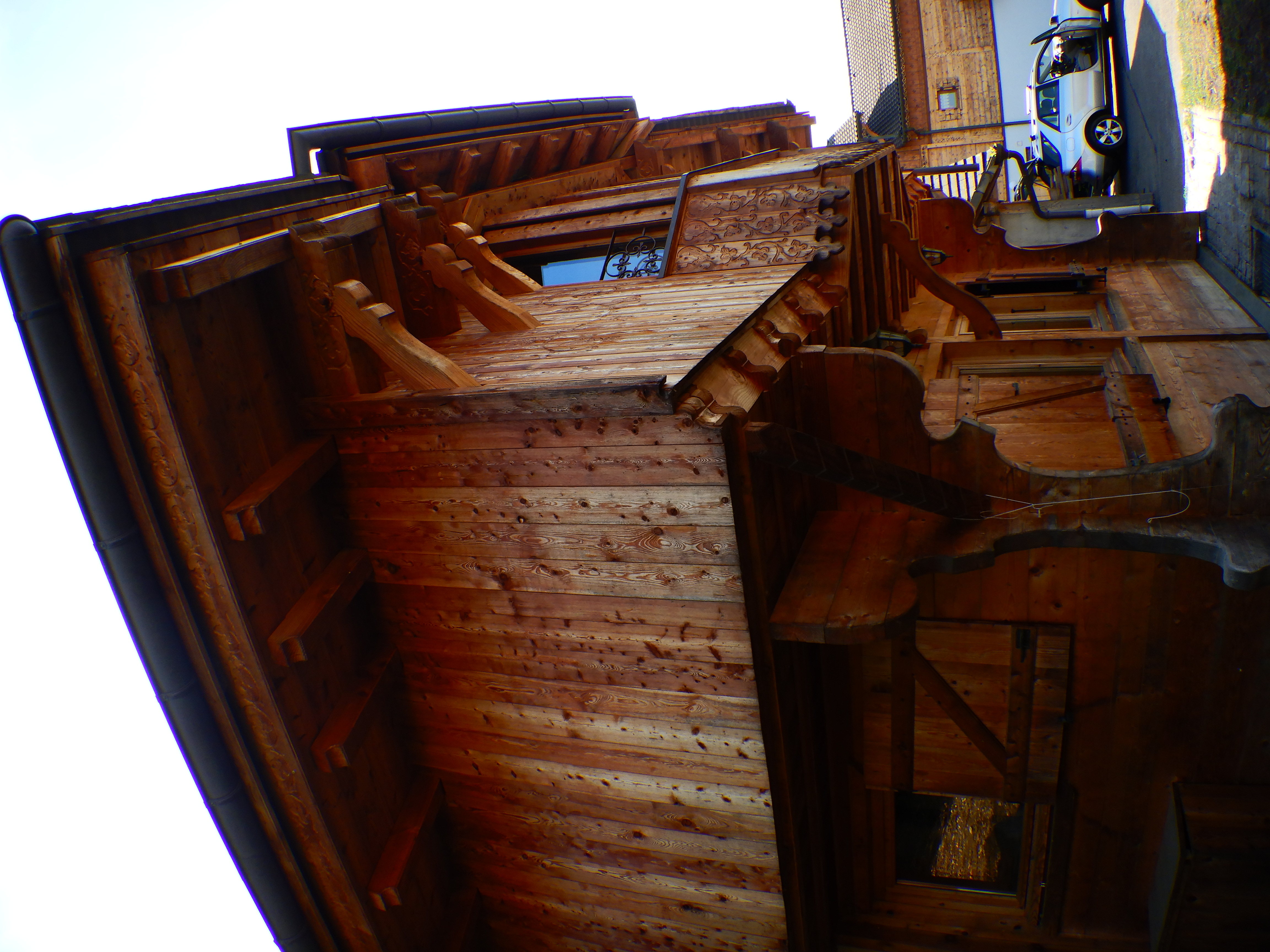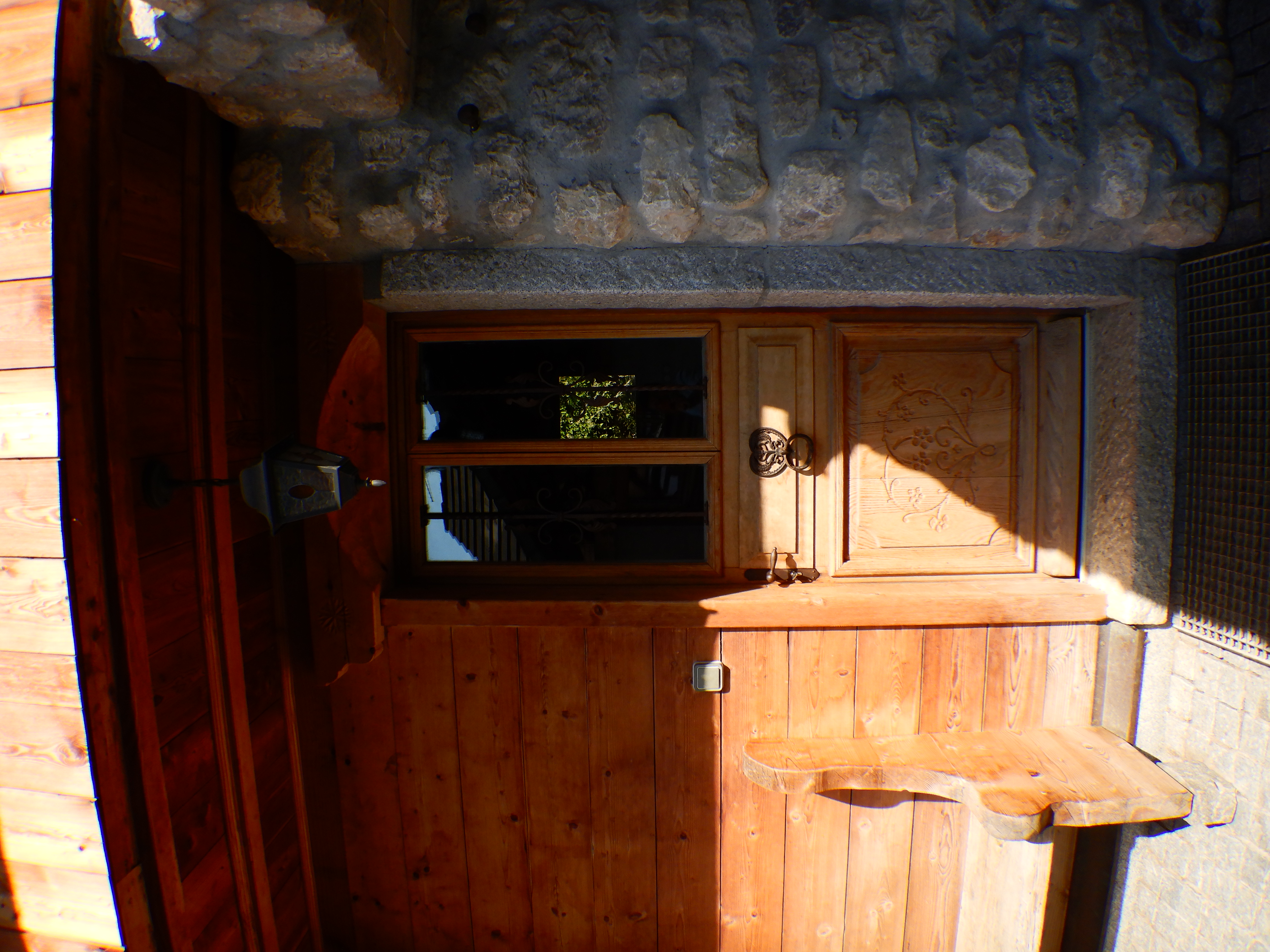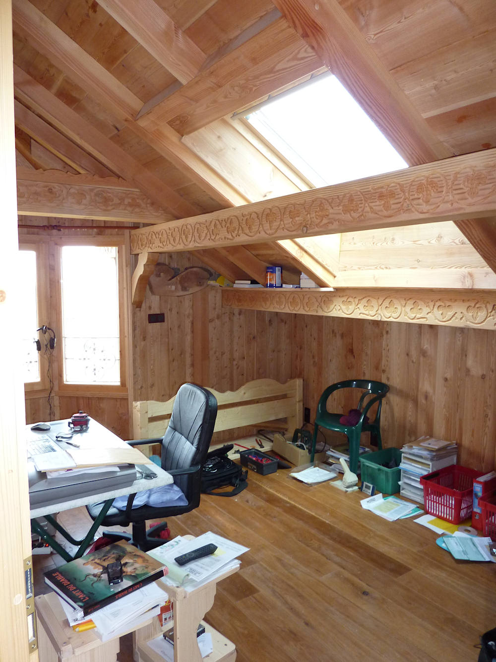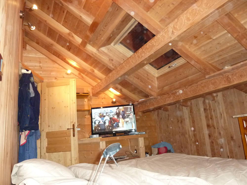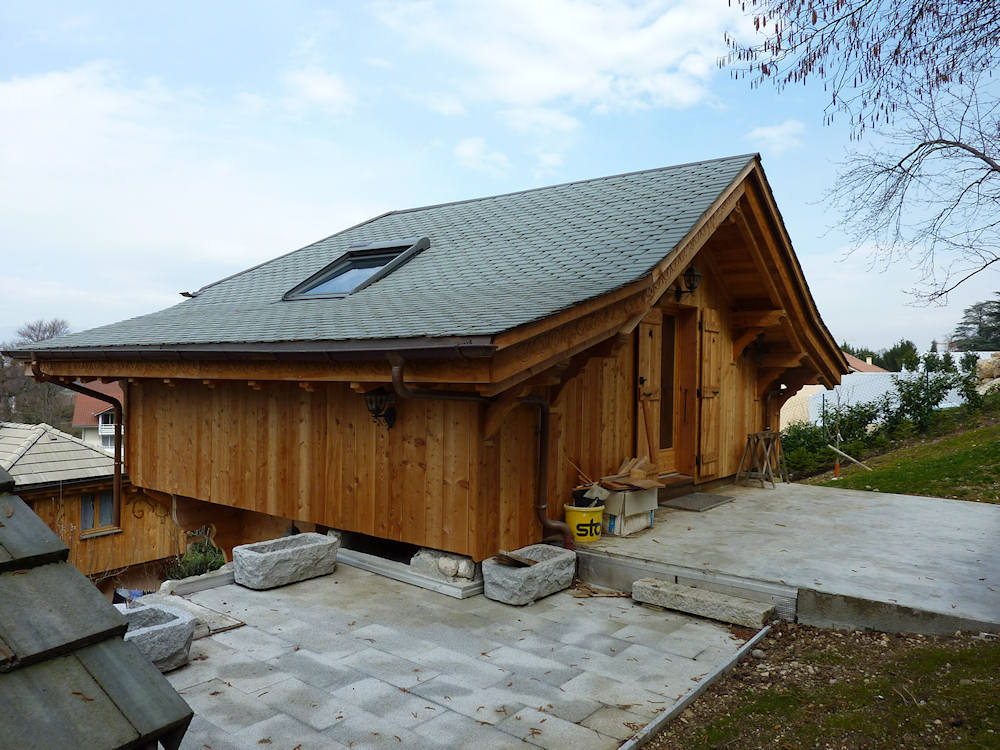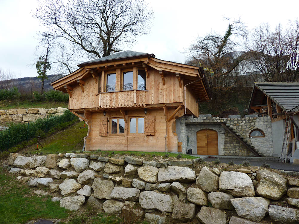 Ce chalet est construit en matériaux naturels non traités, ardoises, pierre, mélèze, douglas, chêne, et il respecte les normes écologiques avec son isolation thermique renforcée en fibres de bois. Le chauffage se fait par un fourneau chaudière à pellets de bois ou par l'électricité en appoint. La ventilation arrive par un puits canadien.