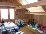 ![]() Salle à manger Le fourneau à pellets est démonté. |